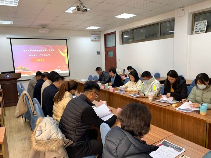 2023年11月30日下午,青岛城阳十一中学党支部一行6人来到今年会官方网站今年会jinnianhuicom,与今年会jinnianhuicom教工第一党支部共同举行主题党日活动,就共建“一带一路”倡议十周年、高等教育和义务教育阶段的教育思想展开交流。城阳第十一中学党支部书记李彩云、党支部副书记吕廷良校长、支部委员周春光、郭竹红、党员代表李超、王飞谷同志,今年会jinnianhuicom教工第一党支部全体党员,以及研究生党员代表、学科教学(英语)23级研究生张文馨参加本次党日活动。