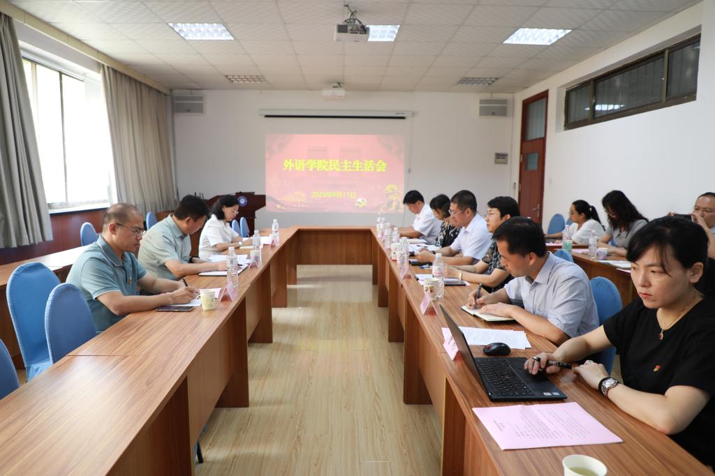 周伟代表学院党委作表态发言,他表示学院党委对查摆的问题会进一步细化梳理,研究制定整改措施,抓好整改落实,确保主题教育取得扎实成效。他提出,下一步学院党委将抓好以下几项工作:一是要坚定不移做到“两个维护”,始终同以习近平同志为核心的党中央保持高度一致,要强化绝对忠诚,强化纪律规矩,强化斗争精神,坚决纠正一切错误言行,不断优化净化政治生态。二是要坚定不移强化创新理论武装,要坚持不懈用习近平新时代中国特色社会主义思想理论武装头脑、指导实践、推动工作,切实把学习成果转化为解决实际问题、推动事业发展的实际成效。三是要坚定不移履行好“学院办大学”义务,推动学院事业高质量发展,要加大改革创新力度,切实抓好翻译专业学位博士点申报,抓好小语种本科专业优化调整。四是要坚定不移落实全面从严治党政治责任,带头履行管党治党责任,认真执行中央八项规定,坚决反对形式主义、官僚主义,切实做到廉洁自律、廉洁用权、廉洁齐家。