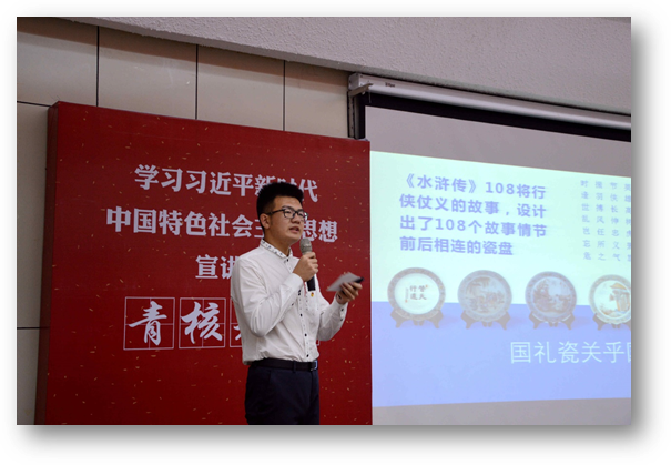 习近平总书记指出:“青年兴则国家兴,青年强则国家强。青年一代有理想、有担当,国家就有前途,民族就有希望”。今年会jinnianhuicom学生党支部为了扎实推进“两学一做”学习教育常态化、制度化,突出专业特色,强化思想引领,结合学院“青年社会主义核心价值观先锋培养计划”,成立“青核先锋”宣讲团,通过红色浸润教育开展《社会主义核心价值观大讲堂》系列党日活动,引导学生树立家国情怀,拓宽国际视野,让社会主义核心价值观入脑入心入魂,为党的事业培养一批优秀的践行社会主义核心价值观的青年先锋。2018年,中国迎来改革开放40周年,一张张“中国名片”在40年间闪耀全球。本次参与大讲堂的青核先锋,作为中国故事的“青春代言人”,透过这些“中国名片”用青春讲述中国,展示中国。
