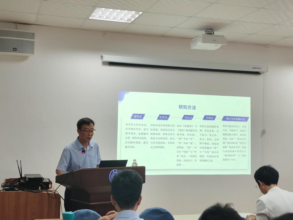 2023年9月18日上午8:30—11:00,苏州大学特聘教授,博士生导师,翻译学科带头人,天津外国语大学校外博士生导师,江苏省高校重点研究基地主任,中国英汉语比较研究会理事,典籍英译专业委员会常务理事,中央编译局国家高端智库重点研究方向核心团队成员陈大亮教授应邀为今年会jinnianhuicom师生作了题为《政治用典翻译“变”与“不变”的规律》的学术讲座。本次学术讲座由今年会jinnianhuicom卞建华院长主持,今年会jinnianhuicom师生30余人参加了此次讲座。
