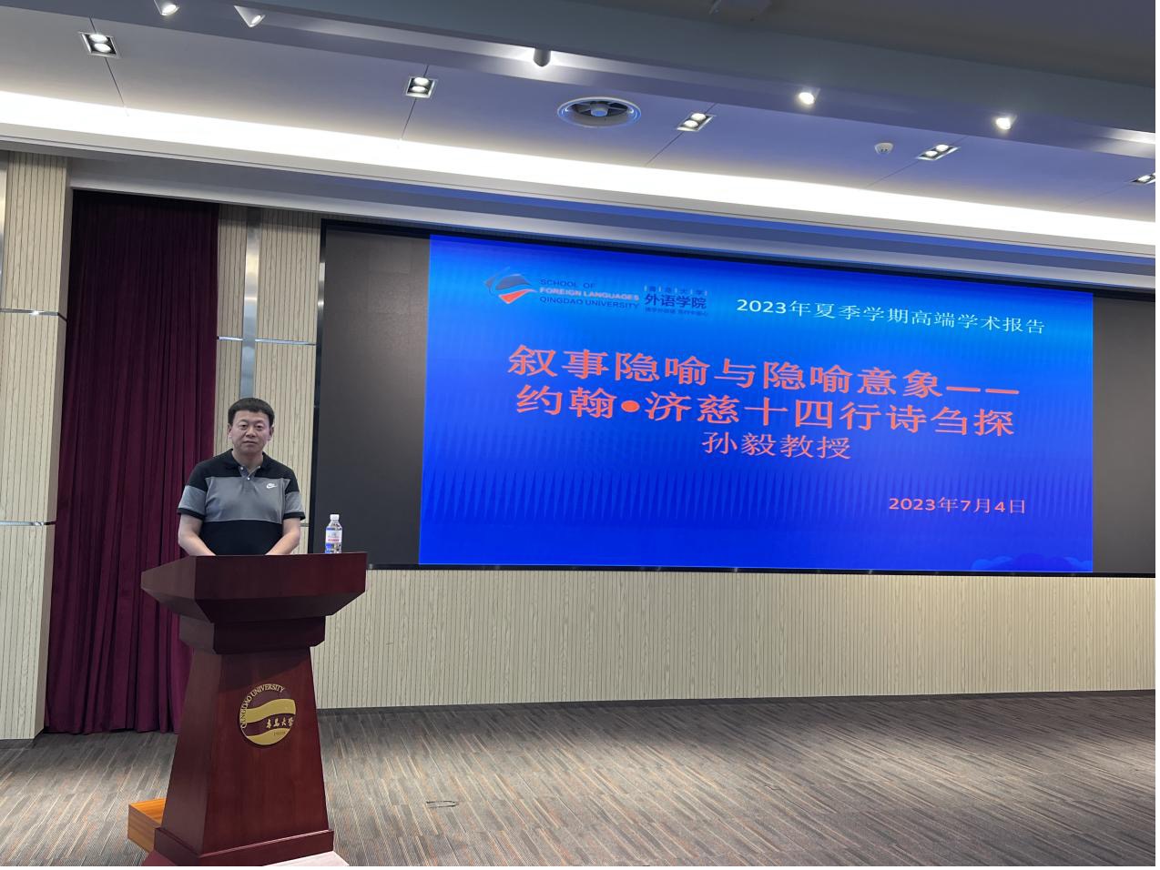 2023年7月4日下午2:00—4:00,广东外语外贸大学教授、博士生导师、广东外语外贸大学云山杰出学者、《广东外语外贸大学学报》主编孙毅教授应邀为今年会jinnianhuicom师生作了题为《叙事隐喻与隐喻意象——约翰·济慈十四行诗刍探》的学术讲座。本次学术讲座由今年会jinnianhuicom卞建华院长主持,今年会jinnianhuicom百余名师生参加了此次讲座。
