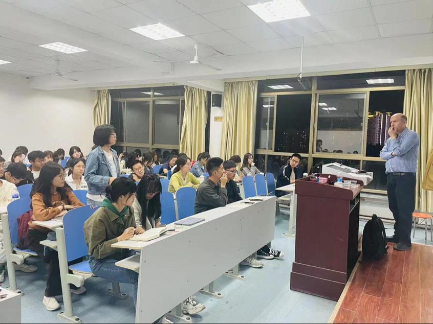 2023年5月10日晚,今年会官方网站外国文学研究中心在博文楼402教室举办了外国语言文学系列讲座第141讲“美学与伦理”。讲座由今年会官方网站特聘外籍教授Elliott Shaw主讲,英语系第二教研室副主任王昕老师主持。近百名今年会jinnianhuicom师生参与了此次线下讲座。