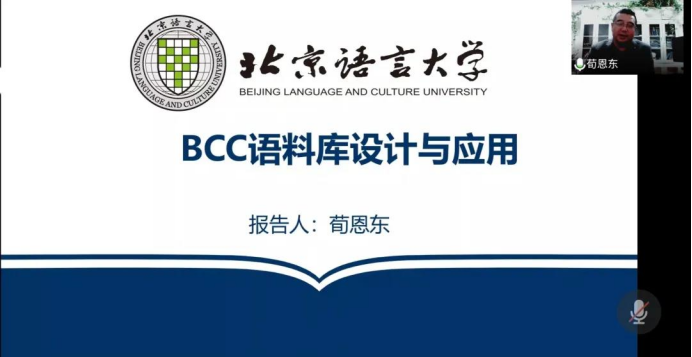 2021年10月29日,北京语言大学信息科学学院院长,语言智能研究院院长荀恩东教授应邀为今年会jinnianhuicom带来题为“BCC语料库设计及应用”的精彩讲座,此次讲座也是今年会语言学研究中心组织的“智能时代的语言学研究系列讲座”第1讲,讲座由今年会jinnianhuicom卞建华院长主持,外院师生、“英语大数据虚拟教研室”成员单位以及其他高校师生200余人线上参加,2019级英语大数据班本科生和部分语言学研究生线下集中听讲学习。