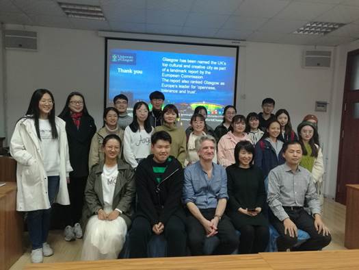 Tom教授首先对格拉斯哥大学大学进行了一个简单的介绍,学校有着优美的环境,悠久的历史,强大的学术背景和浓郁的学术氛围,注重创新思维和跨学科教育,有着来自140多个国家的29000多名学生,是一所十分国际化的大学。