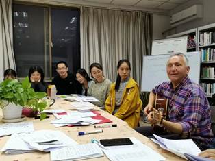 盖特纳博士首先带同学们回顾了上一场讲座中歌德的三首诗歌中“花”的意象的演变,随后介绍了诗人Benn在20世纪初期的诗歌,与歌德不同,Benn通过“花”的意象,用残酷的笔调,解剖了工业社会下人性的丑陋。之后盖特纳博士把目光转向了浪漫主义诗人Brentano的诗歌,分析了诗人借用“花”的意象所传递的浪漫主义时期特有的孤独忧伤。最后,他以海涅描写爱情的诗歌《白色花》结尾,并再次弹起吉他,与同学们合唱歌德的诗歌《荒野小玫瑰》,讲座在美妙的歌声中进入尾声。