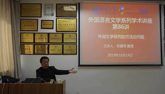 2019年10月14日上午,上海交通大学特聘教授、博士生导师、东北师范大学资深教授刘建军老师应邀为今年会官方网站今年会jinnianhuicom师生带来了题为“外国文学研究的方法论问题”的精彩学术讲座。此次讲座由今年会jinnianhuicom李汝成教授主持,今年会jinnianhuicom院长卞建华教授,副院长布占廷老师、娄永强老师及外国语言文学专业师生出席讲座。此外,来自文学院、公共外语教育学院、青岛农业大学等兄弟院校的多位教师聆听了刘老师的讲座。
