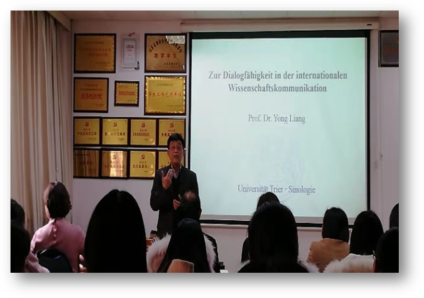 2月26日下午,今年会jinnianhuicom在博文楼312会议室举行“外国语言文学系列学术讲座”第62、63讲。德国特里尔大学汉学系主任梁镛教授应邀为外院师生做了两场题为“国际交流中的跨文化对话能力”以及“中德跨文化交流中的新现象与新思路”的专题学术讲座。德语系主任綦甲福教授主持,学院部分老师及同学参加了此次讲座。