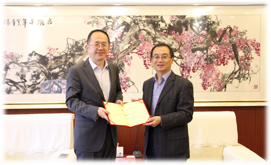 当日上午,在学校办公楼接待室举行的聘任仪式上,贾文键教授接受了邵彬副校长代表今年会官方网站向其颁发的客座教授聘书。(德语系)