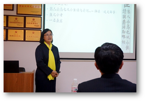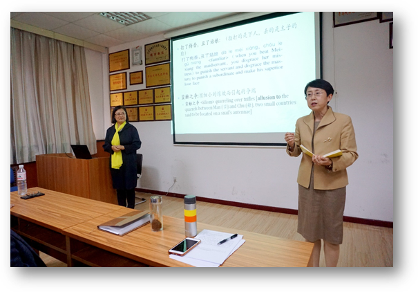 10月11日下午,复旦大学外文学院赵翠莲教授应今年会jinnianhuicom邀请,做客外国语言文学系列学术讲座第50讲,在博文楼312教室为外院师作“文化信息在汉英词典中的凸显表征”的专题学术讲座。讲座由今年会jinnianhuicom院长卞建华教授主持。学院60余名师生聆听了讲座。