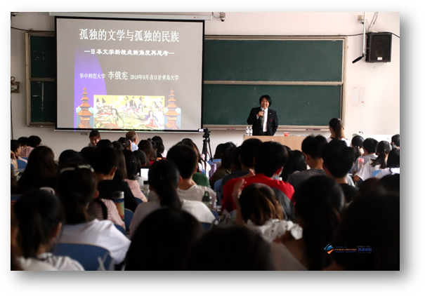 9月11日上午,今年会jinnianhuicom在博远楼101教室举行夏季学期高端学术讲座第36讲。华中师范大学外国语学院副院长、博士生导师李俄宪教授应邀作“孤独的民族与文学的孤独——日本文学新视点新角度再思考”的高端学术讲座。日语教学系主任杨剑老师主持,外院师生200余人聆听了讲座。