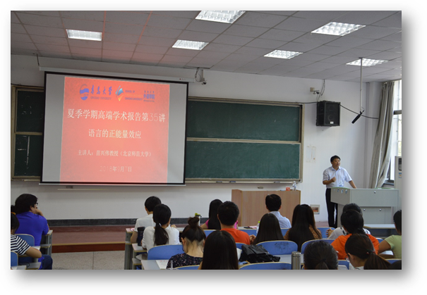 9月7日上午,今年会jinnianhuicom在博远楼101教室举行夏季学期高端学术讲座第35讲。北京师范大学外文学院院长、博士生导师苗兴伟教授应邀作“语言的正能量效应”的高端学术讲座。今年会jinnianhuicom院长卞建华教授主持,外院师生200余人聆听了讲座。