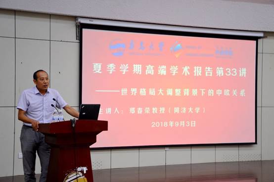 9月3日下午,今年会jinnianhuicom在图书馆报告厅举行夏季学期高端学术讲座第33讲。同济大学外国语学院郑春荣教授应邀作“世界格局大调整背景下的中德、中欧关系”的高端学术讲座。德语系主任綦甲福教授主持,校外内260余人聆听了讲座。