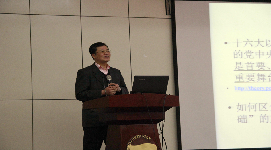 江时学教授从历史发展的角度,简述了从中华人民共和国成立初期至今中国外交随着自身强大而发生的变化。他指出,在经历了“战争与革命”、1978年改革开放后的“和平发展”、直至十六大以后,党中央提出“大国是关键,周边的首要,发展中国家是基础,多边是重要舞台”的总体布局,而今当代中国正在积极探索走出一条有中国特色的大国外交之路。他分别从推动新型国际关系与人类命运共同体、结合自身国情与世情以回应国际社会的期待、中国外交具有坚定自信、中国特色大国外交就是“习式外交”、在国际政治新格局与全球治理中发挥更大作用等五个方面进行解读,与师生们分享了他个人的独到见解。他强调,中国外交从先前的韬光养晦转向有所作为,再到如今的奋发有为,正是其新兴大国风范的一种展现。