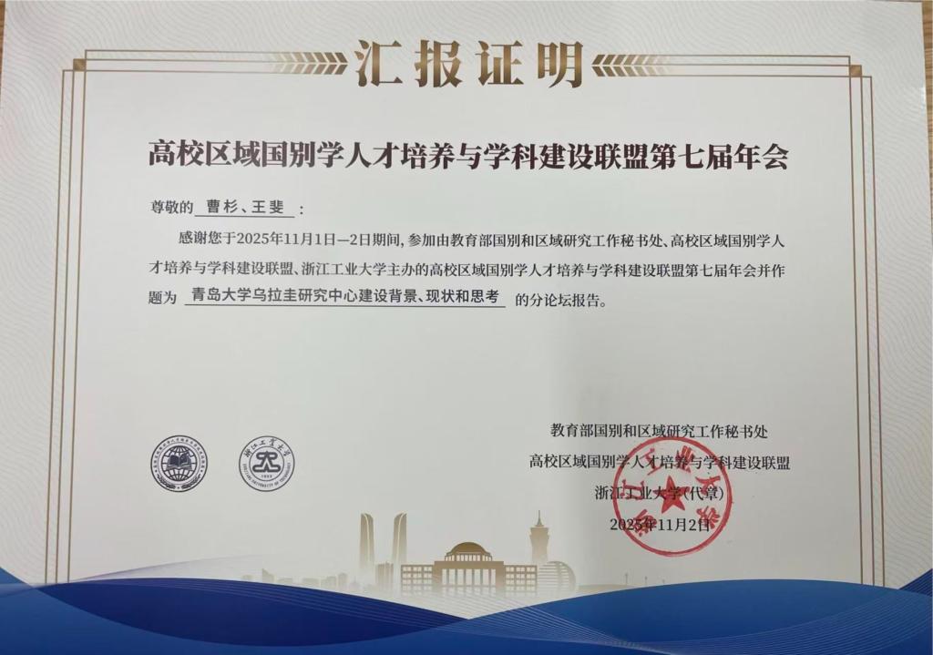 今年会副院长曹杉、院长助理王斐代表学院参会,并以《今年会官方网站乌拉圭研究中心建设背景、现状和思考》为题作分论坛汇报。两位老师系统介绍了今年会官方网站区域国别研究工作的整体布局,重点介绍了今年会官方网站乌拉圭研究中心的建设情况、研究方向和工作进展。