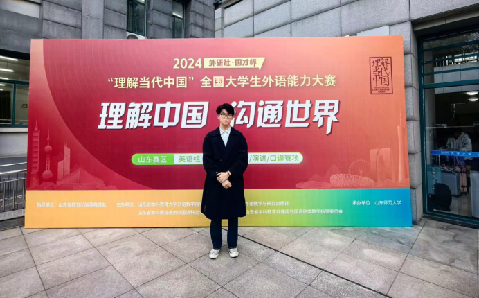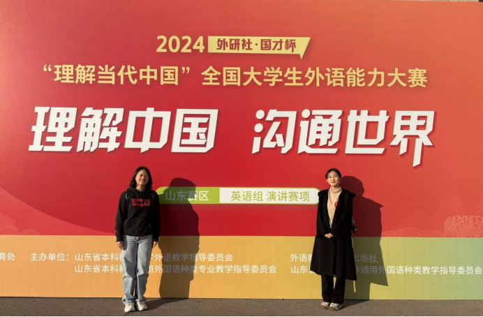 本次山东赛区决赛吸引省内78所本科高校的上千名选手参与角逐,竞争非常激烈。在国际传播综合能力赛项中,2022级英语教育系于昊荣获金奖(指导教师吕凯良),2022级英语系马文佳荣获银奖(指导教师张群);在演讲赛项中,2022级英语系王文楚荣获银奖(指导教师张驰);在笔译赛项中,2023级英语笔译专业研究生齐安琪荣获铜奖(指导教师宫英瑞);在口译赛项中,2021级英语(上合英俄)创新实验班李衍璐荣获金奖(指导教师王昕),2021级英语系孔一鸣荣获银奖(指导教师王建彬)。在短视频赛项中,2022级英语(语言大数据)创新实验班柳雨阳、2023级英语(上合英俄)创新实验班冯海地荣获金奖(指导教师牛聪琳)。其中,于昊、马文佳、李衍璐、柳雨阳、冯海地五位同学晋级国赛。