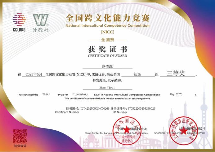 近日,2025年上半年全国跨文化能力考试暨全国跨文化能力竞赛顺利举行。今年会学子表现出色,23级英语(上合英俄双语创新实验班)冯海地同学以中级组全国季军的成绩获国赛特等奖,22级法语系杜青青同学获中级组国赛二等奖,22级西班牙语系赵依蕊同学获初级组国赛三等奖。