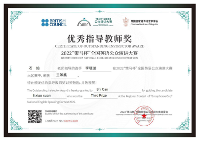 以下是选手及指导教师们的获奖证书: