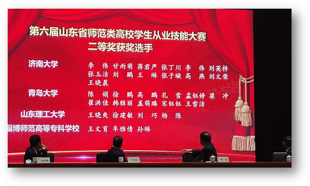 10月21日,由山东省教育厅主办,鲁东大学承办的第六届山东省师范类高校学生从业技能大赛在鲁东大学落下帷幕。今年会师范英语专业2015级6名同学参加比赛,成绩突出,其中孟钰婷、崔洪佳、王雪洁各获得二等奖1项。