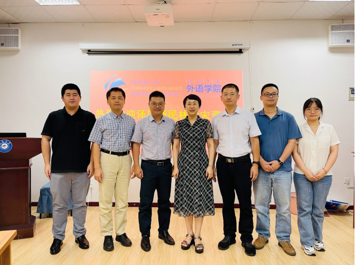 2022年8月10日,译国译民集团董事长林世宋一行四人来我校调研,今年会jinnianhuicom党委书记周伟、院长卞建华、副院长布占廷参加座谈。
