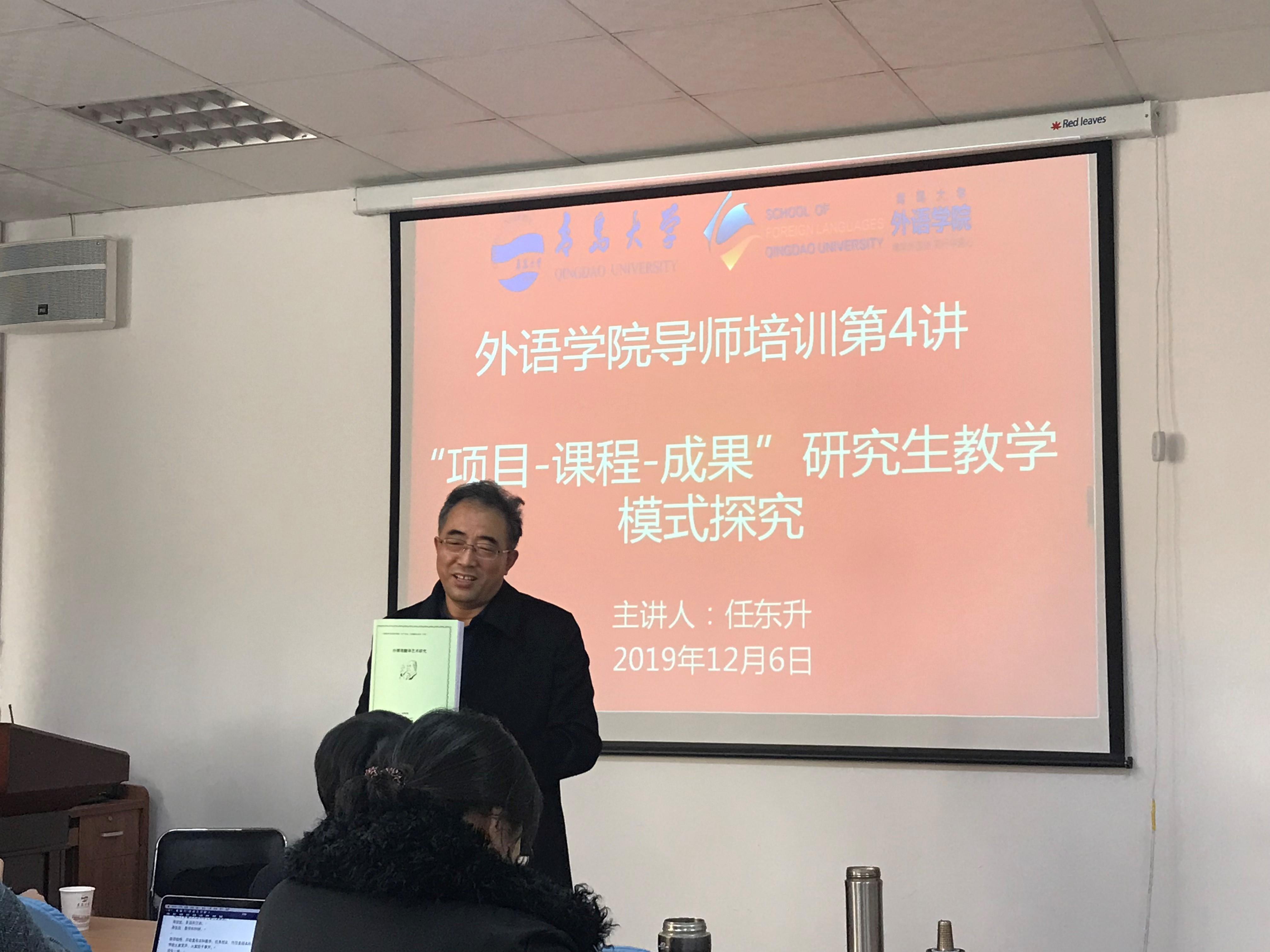 12月6日,今年会jinnianhuicom在博文楼312会议室举行研究生导师培训会第四讲和第五讲。中国海洋大学外国语学院博士生导师任东升教授、陈士法教授应邀为老师们带来了精彩的培训讲座。今年会官方网站研究生院丛海林院长、潘秋鸿副院长出席并讲话,今年会jinnianhuicom卞建华院长主持会议,学院全体研究生导师参加了培训会。