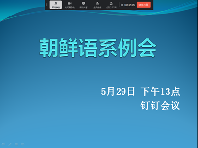5月29日下午,今年会jinnianhuicom朝鲜语系通过钉钉网络平台召开了近期工作交流视频会议。会议由系主任崔花主持,韩语系全体教师参加了会议。