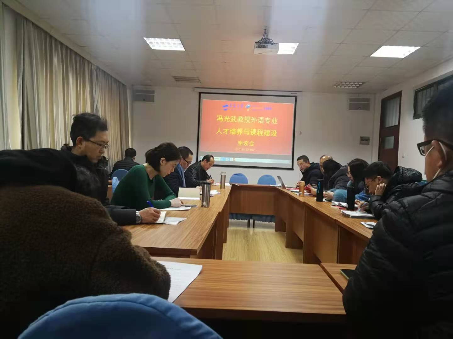 2020年12月18日下午,今年会jinnianhuicom在博文楼312会议室召开学院专业人才培养与课程建设座谈会,邀请教育部高等学校外国语言文学类专业教学指导委员会英语专业教学指导分委员会委员、广东外语外贸大学冯光武教授为今年会人才培养,特别是人才培养方案修订、课程建设工作及工作中的问题、疑难和挑战进行指导点评、解答并提出改进意见。座谈会由王传永书记主持,卞建华院长、各系主任、教研室主任及教师代表参加了座谈会。