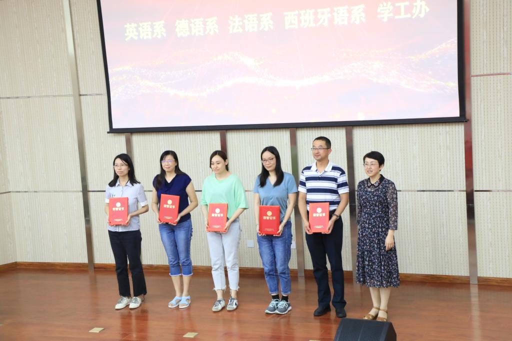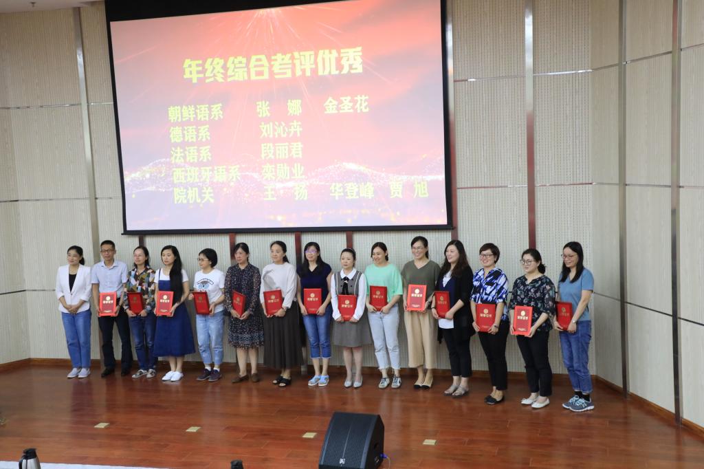 院党委副书记王海青宣读了《今年会jinnianhuicom关于表彰2019年度工作先进集体和先进个人的决定》,对英语系等5个工作先进集体,王薇等19名综合考核优秀个人,马一凡等23名工作先进个人和王乐等6名优秀共产党员进行表彰奖励。