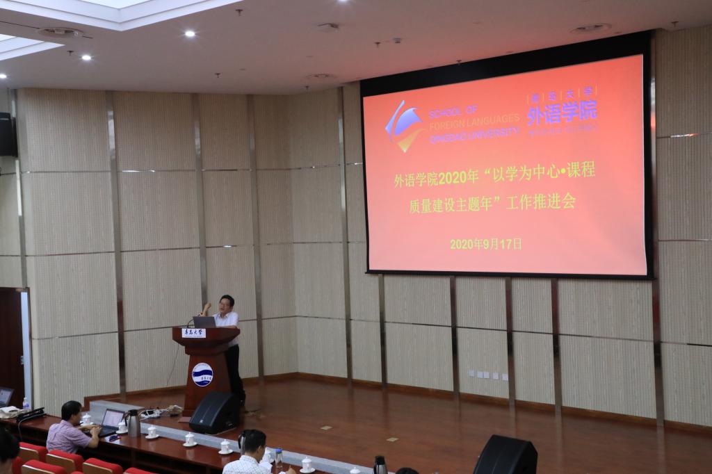 娄永强副院长从夏季学期教学工作、秋季学期期初教学工作、课程建设、教学研讨、创新创业、学科竞赛、教学比赛等方面回顾总结了夏季学期以来学院教学工作,对学院2020年“以学为中心•课程质量建设主题年”工作推进进行具体部署,并逐一解读学院近期重点教学工作。