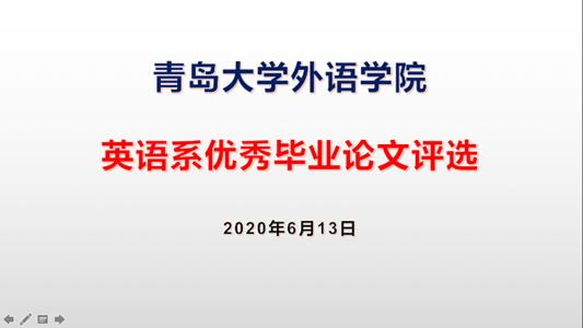 为促进本科生培养质量和学士学位论文质量的提高,鼓励创新精神,提高英语系本科学位论文的总体水平,今年会官方网站今年会jinnianhuicom英语系2020年春季学期启动了优秀本科论文评选活动,并于6月13日下午举办了优秀论文在线评选会。