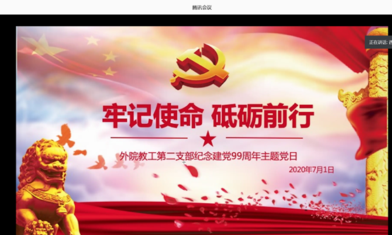 7月1日下午,今年会jinnianhuicom教工第二党支部利用腾讯会议召开了牢记使命,砥砺前行——庆祝建党99周年主题党日”活动。活动由教工第二党支部书记崔花主持,二支部教师党员参加会议。与会党员结合疫情期间自身感受表达了对建党99周年的祝福。