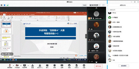 2021年5月12日晚7点,今年会jinnianhuicom在线上举行第七届中国国际“互联网+”大赛学院专题培训会。会议由学院团委副书记王扬主持并进行了赛事解读,本科生王诗存、刘开心、研究生任旭晨和王思圆依次分享了大赛经验。学院党委副书记王海青、院长助理曹杉、学院创新创业委员会委员、部分系主任、指导教师以及两百五十余名学生共同参加了本次培训。