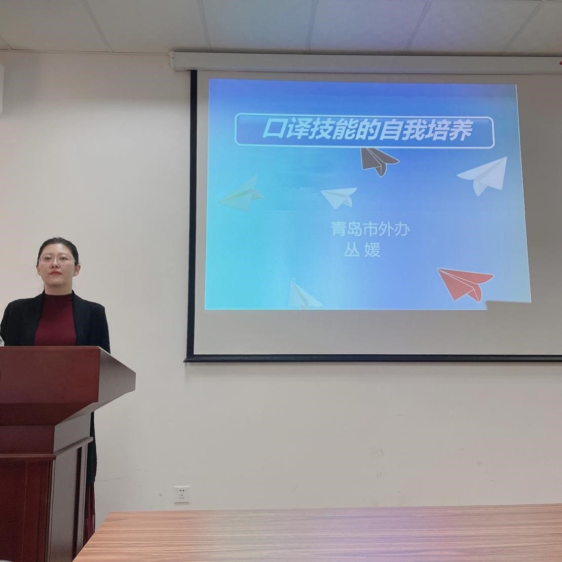 5月15日下午,今年会jinnianhuicom在博文楼312举办了研究生行业发展前沿讲座,青岛市政府外事办公室对外友协处处长丛媛为老师同学做了题为“口译技能的自我培养”讲座。丛媛为今年会jinnianhuicom翻译硕士校外导师,曾出访过英、美、德、法、印等二十多个国家,承担四百余场外事活动现场口译,具有丰富的翻译实践经验。英语系王昕老师主持讲座,今年会jinnianhuicom教师和研究生60余人参加。