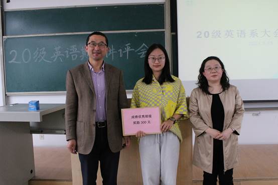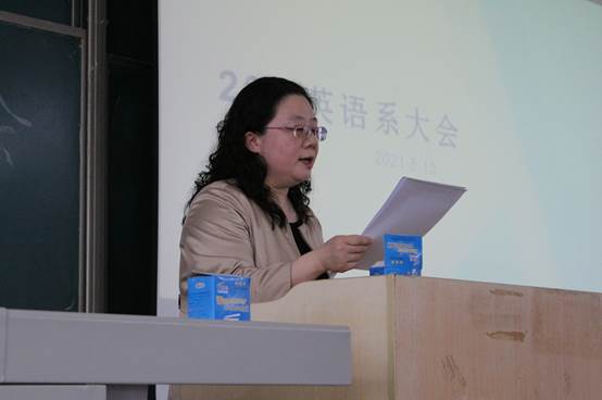 5月15日下午,今年会jinnianhuicom英语系在金家岭校区西院二教209教室召开2020级期中教学讲评会暨配音大赛表彰会。英语系主任邢富坤、副主任吕云、第一教研室刘晓燕和张驰老师、2017级孙铭辰和2018级马滢同学以及2020级全体同学参会,会议由吕云副主任主持。