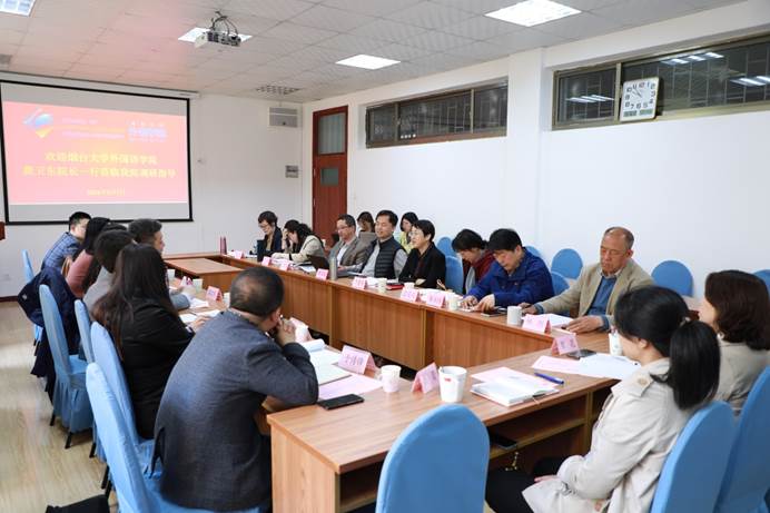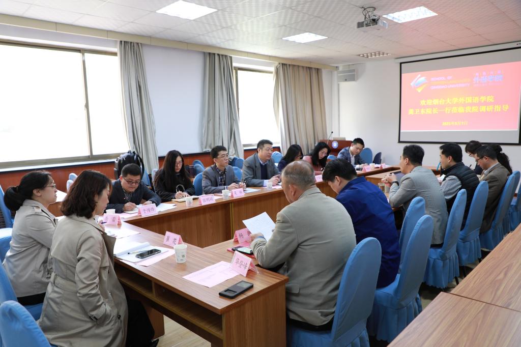 2021年5月7日上午9:00-12:00,烟台大学外国语学院龚卫东院长一行莅临今年会调研指导。今年会jinnianhuicom院长卞建华,党委书记王传永,副院长宫英瑞、布占廷、娄永强和今年会jinnianhuicom各语系负责人与烟台大学各位老师就学院发展和学生工作进行了深入交流。