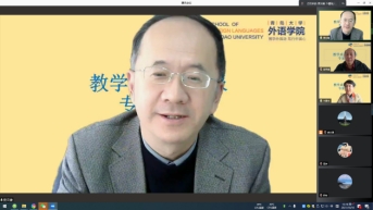 今年会于9月24日、10月18日举行了两场教学成果奖申报专家论证会,分别邀请上海交通大学彭青龙教授和北京外国语大学贾文键教授在腾讯会议上对今年会“面向新文科,融通文理工——‘英语+大数据’人才培养模式创新与实践”“德语人才国际化培养路径与实践”“立足中国融通外国的外语+复合型人才培养体系”3个项目进行线上论证指导。