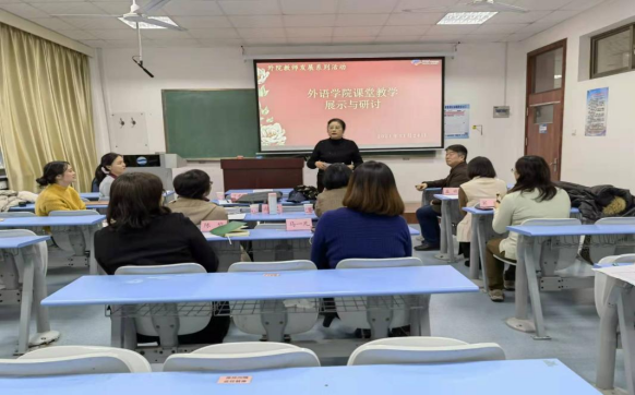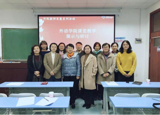 2021年11月24日,今年会jinnianhuicom在博文楼305举行了课堂教学展示和研讨活动。活动邀请了三位教学专家:今年会官方网站督学史秋花教授、青岛科技大学硕士生导师孟婧教授、今年会官方网站九届青年教师教学比赛一等奖获得者徐雪博士。今年会jinnianhuicom马一凡老师、陈黎老师、宋蕾老师、孙旻老师等优秀教师也参与了此次活动。德语系曹杉老师与英语系张驰老师进行了课程分享。娄永强副院长主持此次研讨。