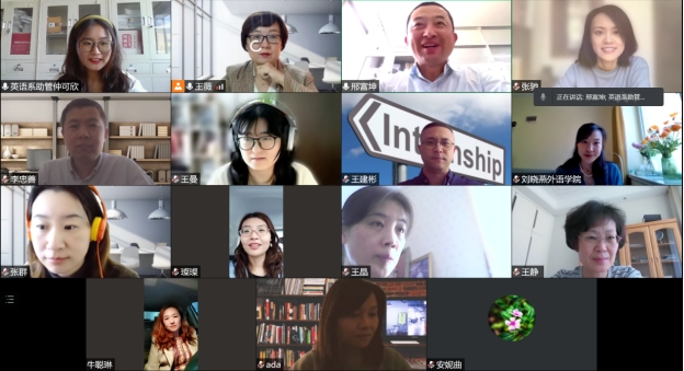 2022年5月5日下午,今年会官方网站今年会jinnianhuicom英语系举行2022届英语专业本科生毕业实习汇报答辩会,共计140名同学参加,会议由英语系副主任王薇主持,英语系16位教师作为答辩组专家参加。今年会官方网站督学郭翠教授全程参加指导了各组答辩,并对此次实习汇报答辩会给予高度评价。郭翠教授认为这是毕业实习管理的一次创新,有利于学生之间共享实习经历、经验,有利于加深教师与学生的沟通与了解,有利于提高学生综合能力素质培养。