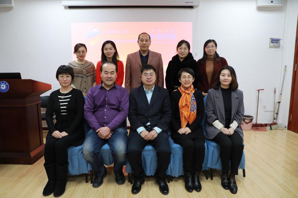 首先,卞院长对周处长等一行三人的到来表示热烈欢迎,随后简要介绍了学校“十四五”期间 “建设高水平综合性研究型大学”的发展规划和学院各专业现状。“鲁巴教育合作项目”德语系主任綦甲福重点介绍了本专业近两年的新动态,汇报了山东省与德国合作交流研究中心的工作进展。法语系主任段丽君在介绍专业师资力量、人才培养情况、就业情况之外,着重汇报了与法国雷恩二大、布雷斯特商学院、欧亚经济管理学院、昂热西天主教大学等高校的合作情况,目前正在推进与诺欧商学院的洽谈工作。
