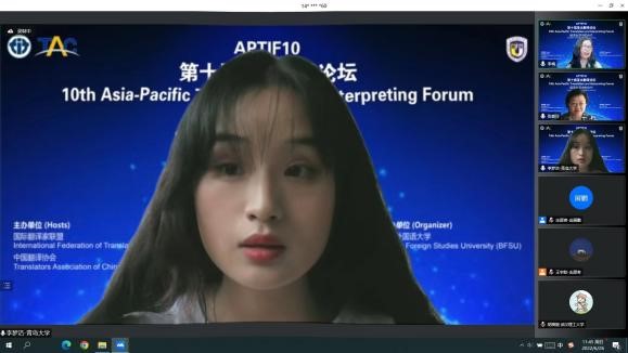 6月25日至26日,由国际翻译家联盟、中国翻译协会联合主办、北京外国语大学承办的第十届亚太翻译翻译论坛在北京举行,今年会jinnianhuicom卞建华教授带领2020级英语笔译专业硕士研究生张钰、2020级外国语言学及应用语言学硕士研究生李梦洁参加了此次会议并做交流。