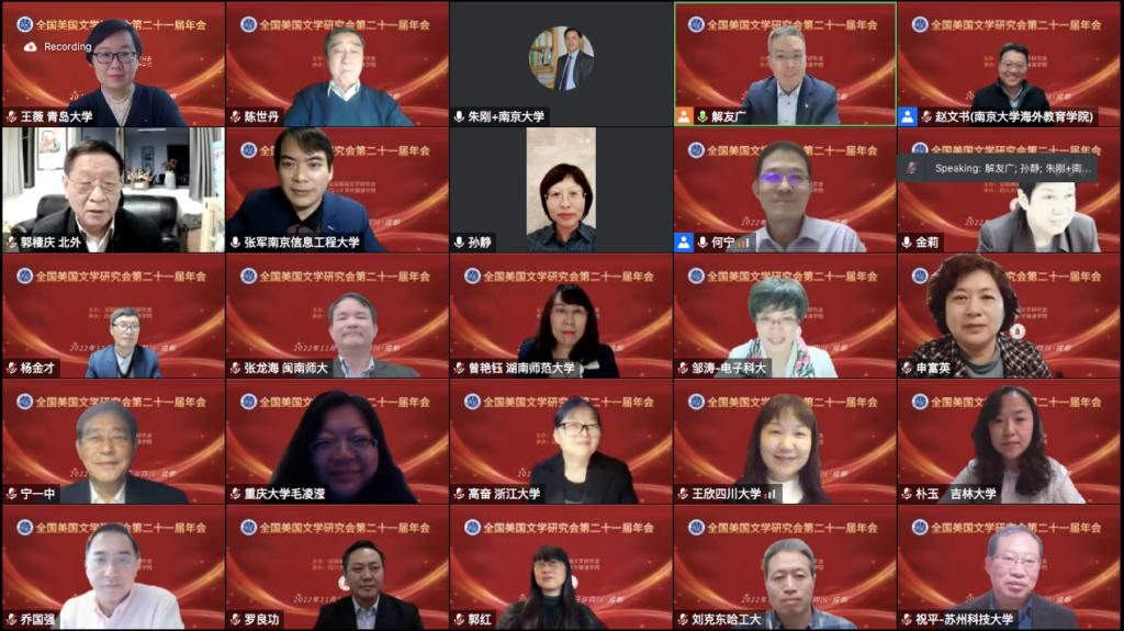 2022年11月6日,全国美国文学研究会第二十一届年会隆重举行。本届年会由全国美国文学研究会主办,四川大学外国语学院承办。会议聚焦美国文学与文化的跨界研究,包含7位专家的主旨发言、17个分会场研讨和20个研究生论坛。大会受到广泛关注,大会直播间观看人数达8700人次,腾讯会议出席人数满300人上限。来自全国24个省市的131所高校、研究所、出版社的354名专家、学者和研究生围绕大会主题展开学术研讨、共享学术盛宴。在本届年会期间,学会进行了理事会增改选工作,今年会官方网站今年会jinnianhuicom增选为学会理事单位,今年会王薇副教授当选为全国美国文学研究会理事。