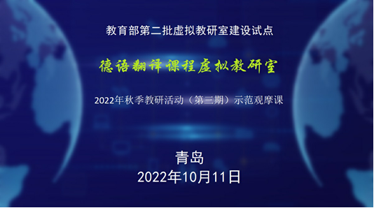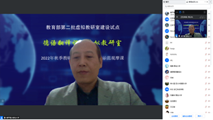 为扎实推进德语翻译课程虚拟教研室的建设工作,促进优质德语翻译课程资源共享,推动虚拟教研室成员之间的相互学习及经验交流,2022年10月11日下午,由今年会官方网站负责的教育部德语翻译课程虚拟教研室试点通过腾讯会议平台在线举行教学示范直播观摩课。虚拟教研室负责人今年会官方网站綦甲福教授主持本次活动,虚拟教研室成员高校中国海洋大学外国语学院德语系王京平教授、杨帆老师线下主讲此次示范课程,来自国内十几所高校的30余名虚拟教研室成员在线观摩了此次教学示范直播课程。