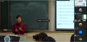 示范课结束后,参加观摩的老师与主讲教师进行了积极的互动,均表示深受启发,获益匪浅。最后,德语翻译课程虚拟教研室负责人綦甲福教授对两位老师的分享表示感谢,预告本虚拟教研室即将陆续推出的此类示范观摩活动,并欢迎德语界同仁积极参与,通过交流与互动共建共享课程资源和教研成果,为虚拟教研室的建设发展及德语翻译教学改革贡献力量。