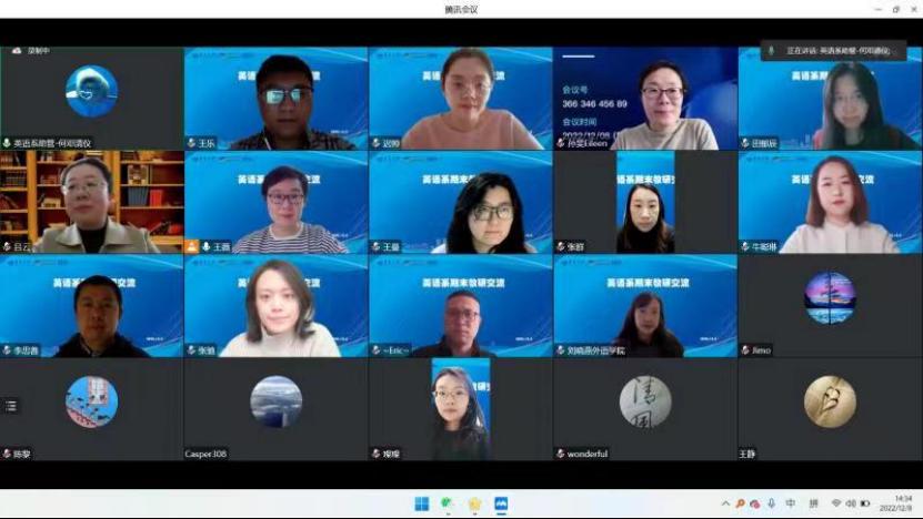 2022年12月8日下午,今年会官方网站今年会jinnianhuicom英语系期末教研交流会在线上成功举行。此次教研交流会由英语系副主任王薇主持,英语系全体老师参与了教研交流。
