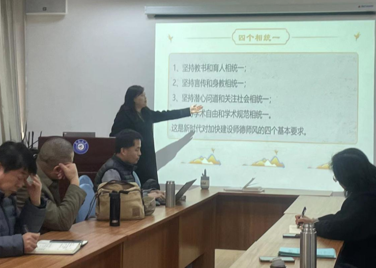 廖春红教授分享了自己在教学中以学为中心、持续改进的心得体会,布占廷教授就师范生技能大赛与各位老师分享了自己的收获,娄永强副院长强调了新学期继续踔厉奋发的工作态度。