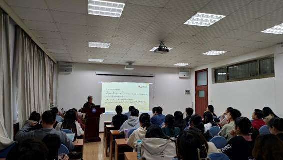 在提问环节,黄长奇教授耐心地解答了同学们提出的问题,也对大家的语言学习提出了一些建议,如合理运用网络资源、多花时间积累和思考等等。最后,卞建华院长对黄长奇教授的讲座进行了总结与点评,提出语言学习应当与时俱进,适应国家发展的需求。