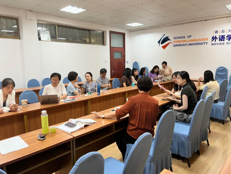 在综合英语课程组教研交流环节,刘晓燕、牛聪琳、王晶、王静四位老师分享了2022年秋季学期和2023年春季学期综合英语系列课程适应《理解当代中国——读写教材》教学经验。老师们提到,《理解当代中国——读写教材》中的课文契合当代中国的特色和精神,此教材与综合英语现用教材课文结合度较高。在学习过程中,老师强调学生可以带着爱国情感学习,结合具体案例,运用实践任务,提高学生用英语表达中国故事的能力。有老师建议《理解当代中国——读写教材》中的部分单元可以根据综合英语课程的教学内容作相应调整,作为某些单元的背景教材,以此形成教材间的有机关联。