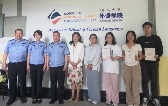 王海青代表学院师生对各位民警的到来表达了真挚的欢迎,感谢民警们在维护公共治安方面所做的辛勤工作,同时也感谢麦岛派出所能给予外院学子一份实践的机会,使学生们通过参与实际的翻译实践增强语言能力,也让他们有了更深的社会责任感。