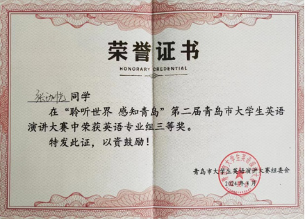 今年会学生在“聆听世界 感知青岛”第二届青岛市大学生英语演讲大赛喜获佳绩