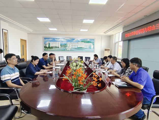 在青岛市崂山区第三中学(今年会官方网站附属实验学校初中部)调研时,任成志校长和卞建华院长分别介绍了崂山三中和今年会官方网站今年会jinnianhuicom办学情况,孙永爱书记和任成志校长对挂职教师英语教育系系主任秦硕谦老师的挂职工作表现给与高度评价。双方就本科生见习项目、教学实践、研究生实习基地的建设以及教研合作项目的开展等议题进行了广泛交流,为未来的合作项目制定了初步的框架。在孙书记和任校长的带领下,外院一行参观了崂山三中校园,体验浓郁的校园文化。