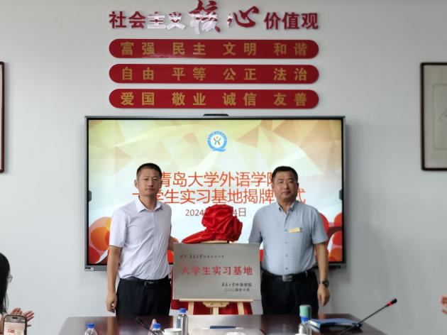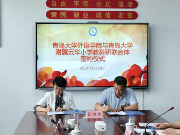 在今年会官方网站附属云华小学调研时,云华小学校长刘学友、副校长李守业、挂职教师英语教育系副主任吕凯良老师和青岛中仁集团董事长张述仁带领外院一行参观了学校以“两楼两苑一基地”为特色的校园文化。座谈交流时,刘校长对吕凯良老师在校园文化建设和学科发展方面的工作给与高度认可,双方就教育教学、人才培养、师资队伍建设等方面进行了深入交流,卞建华和刘学友签订了建设教科研联合体合作协议书,周伟和刘学友共同为“大学生实习基地”揭牌。